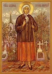 After her husband's death, life for Xenia completely changed. In the Russian Orthodox tradition, it is a great tragedy for a person to die before receiving his last communion and confession. Xenia desperately wants to save her husband's soul and so she begins to do that by fervently praying to God for her husband's soul and giving all of her earthly possessions to the poor people of St. Petersburg (almsgiving is a common practice after somebody dies but Xenia takes it to a whole another level!). Xenia also - curiously - puts on her husband's clothes and completely abandons her way of life; instead of partying and living the life of a rich Russian woman she gives away everything (even her house!) and wanders around barefoot and homeless praying, comforting the poor and forsaken, prophesying the future, and performing miracles wherever she goes.