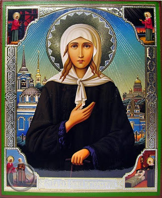 [It is here that I must mention that I grew up in a Russian Orthodox Christian household where I was taught the lives of some of the most famous saints in Russia's history. St. Xenia just happens to be one of my mother's most favorite saints and the picture below is of an icon that still hangs on the wall in the living room of my mother's house.]