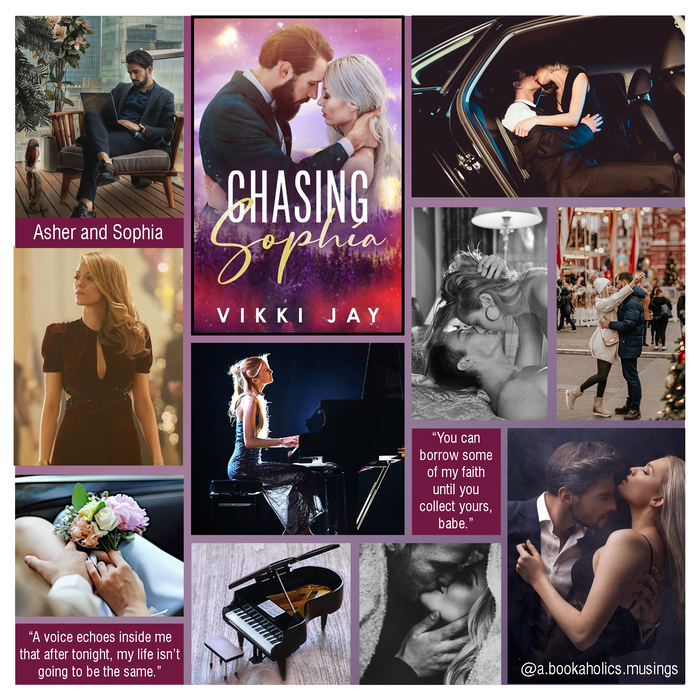 Chasing Sophia by Vikki Jay is a small-town romance about a wealthy retired veteran Ashcroft Miller and a pianist Sophia Jones.