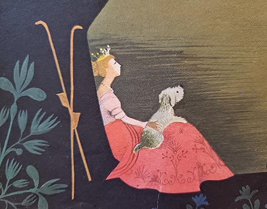 My copy is from the early 70s, and had a much cuter cover, with a tall and spindly Princess Adelgitha, and a detailed and startled-looking cabbage moon on the front. The story is funny, adventurous, a tiny bit feminist (Princess Adelgitha wants to be accepted for exactly who she is, and any princes who come her way had better be prepared for that), and is adorably illustrated. The 'bad guy' is naughty, but not evil, and Jenny the dog, loyal and resourceful, helps to save the day.