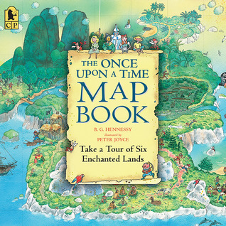 The Once Upon a Time Map Book is centred around Cinderella and Prince Charming's honeymoon. They take a journey through six lands: Neverland, Oz, Wonderland, the Giant's Kingdom (Jack and the Beanstalk), Aladdin's Kingdom and the Enchanted Forest. There is a map of each which takes you on a brief guided tour through each land, catching the tourist spots and keeping an eye out for a hidden wedding present/the Lost Boys/the Cheshire Cat/etc... before making it back home to the castle, in time for a Happily Ever After.