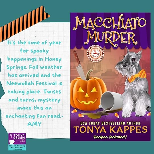 Macchiato Murder the13th instalment in the A Killer Coffee Mystery Series by Tonya Kappes. I was so happy to visit Honey Springs Kentucky again, as I love this series. Get ready for a hauntingly delightful addition to the Killer Coffee Cozy Mystery series! Roxanne Bloom, the tenacious owner of the Bean Hive Coffeehouse, finds herself in the midst of a Halloween mystery that will keep cozy mystery lovers on the edge of their seats.