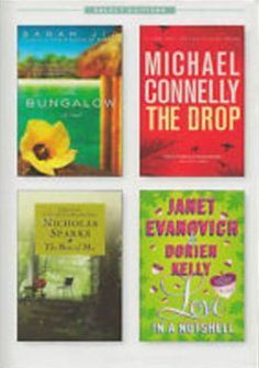 The Bungalow: Sarah Jio; The Drop: Michael Connelly; The Best of Me: Nicholas Sparks; Love in a Nutshell: Janet Evanovich and Dorien Kelly