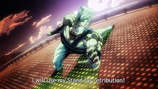 god the SQUAD is here. THE STARDUST CRUSDARERS AND THEIR JOURNEY. ugh i love polnareff so much. HES JUST THE BEST. SO FUNNY. loved the moon stand in this one and ofc the FUCK ASS PERV MONKEY. jotaro is so cold. joesph is so.. well joesph. AVDOL <3. KAKYIONNNN. and my french GOAT. GO AVENGE YOUR SISTER KING. LETS GET DIOS ASS