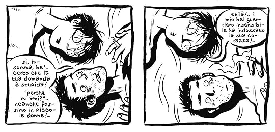 First off, I didn't like the art and found it very off-putting from page one. It really just didn't do a lot for me visually, which can make it pretty hard to enjoy a graphic novel. Then, there's the issue of emotion. Given that this book is a real life love story of a couple where one party has been diagnosed HIV positive, I was expecting this book to make me feel something. It was nearly two hundred pages and I think maybe five of those pages gave me those feelings. I wanted this book to make me feel something and it didn't, and that just may be an issue of my own expectations. Of course, it may also have been a result of not really liking the author. Not the writing, but as an actual person within the context of his story. He came off very pretentious, like the kind of person I would be annoyed to spend time with in real life. My final issue rests with either the translation or the writing. It's hard to tell which when the work was not originally in English. The actual language used wasn't enjoyable to read and the punctuation... was annoying... after a few pages!!!!