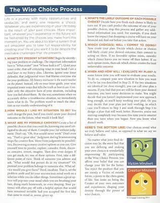 The On Course Success Strategies Review Card is a two-sided laminated card with the 8 Choices of Successful Students on one side and the Wise Choice Process on the other. Carry this with you to remind you about taking personal responsibility and staying motivated, and for a quick review of the Wise Choices critical thinking model.