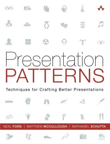 There are good ideas in this book. But to call some of them "patterns" is a bit of a stretch. For example, the "Carnegie Hall" pattern is just practicing your presentation - I don't think several pages are really needed to describe that pattern. Don't get me wrong, there are good ideas in this book such as the idea of Bookends (beginning and ending your presentation with similar or identical slides). But forcing these ideas into a "pattern" format is awkward. This whole book could probably be delivered in a one-hour presentation rather than 250 pages. I also think the authors are too focused on using animated transitions and printing out slide decks - does anybody do that these days?