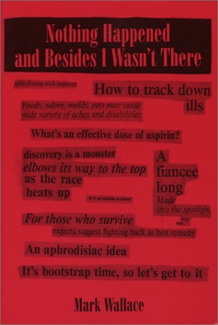Poetry. "If Mark Wallace did the comedy circuit, all that big hair and those sweet drinks would riot in the streets. NOTHING HAPPENED AND BESIDES I WASN'T THERE is a series of one to six line stanzas all revamping the idea of the one-liner. But the joke is always frightening, a world where the 2x4s pounding the cat are hitting our heads and they hurt damn it, as they always make us stop and consider what we are. He is the existential if Batman met the poet and it was for real"—Juliana Spahr.
