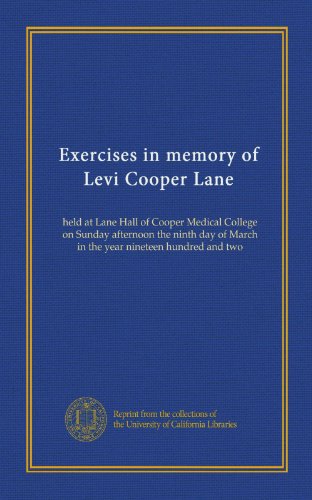 Exercises in memory of Levi Cooper Lane: held at Lane Hall of Cooper Medical College on Sunday afternoon the ninth day of March in the year nineteen hundred and two