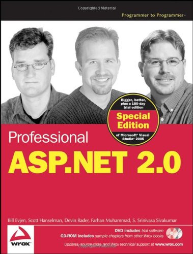 Bonus CD-ROM and DVD * The bonus DVD includes a 180-day trial of Microsoft Visual Studio 2005 Professional * The accompanying CD-ROM features a valuable library of chapters from other key Wrox books. It contains more than 1,000 pages from more than 15 Wrox ASP.NET 2.0, C# 2005, VB 2005, .NET 2.0, and SQL Server 2005 books.