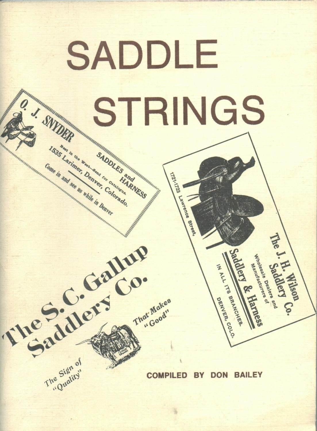 Over 200p, many ills., all commercially photocopied, as issued.Compilation of all kinds of material about western saddle makers--biographies, photographs of saddles, transcriptions of newspaper articles, pages from trade catalogues, etc. With a long index of Colorado saddle makers, arranged by location.