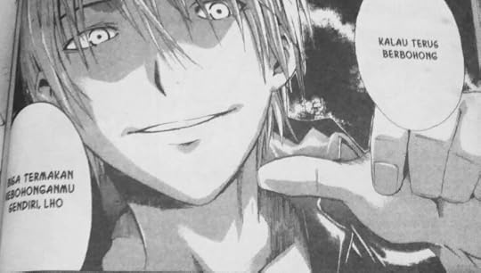 The ending. No spoilers but it was a bit ridiculous coming from the killer. Possible bad ending because it cuts off to let the reader decide what happened. And no: there are no other Doubt sources to conclude it after that last volume. While I did feel like I got cheated because of what possibly happens to the character (I liked them, dammit!) but how it all happened then just got... silly. I would have been fine if the whole events started because of the first reason (you know, the one without the biggest suspension of belief, for those that have already read them all) but... but...