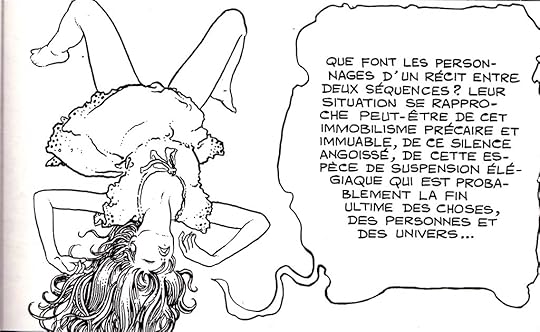 ‘What do the characters in a story do between sequences? Their situation is perhaps like that precarious, immutable immobility, that anguished silence, that kind of elegiac suspension, which is probably the ultimate fate of all things, people and universes….’
