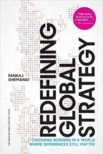 Ghemawat advocates for a state of semiglobalization as opposed to the rhetoric of the globalization apocalypse and argues that cultural, administrative, geographic and economic distances still matter. Yet he also says that there’s value to be found in a expanding your business abroad due to adding volume, decreasing costs, differentiating or increasing willingness-to-pay, improving industry attractiveness or bargaining power, normalizing risk, generating knowledge and other capabilities; and that one should go about creating global value by adapting, aggregating (grouping countries based on similarities), arbitraging (exploiting differences).