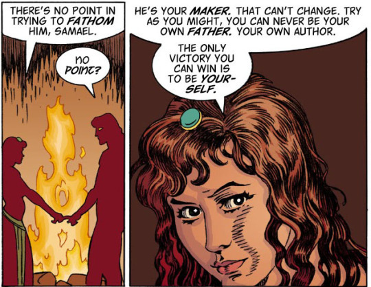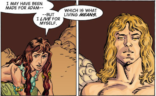 50: Lilith Lucifer "Why do you do these things Lilith? You were made for Adam. Why do you SOIL yourself with Demons?" Lilith ""Why? Because it pleases me I suppose. I may have been made for Adam -- but I LIVE for myself. Which is what living means."