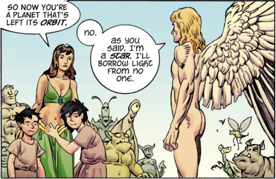 This volume fills some gaps about the tale of the Lightbringer, back when he’s still the “sweet, savage Samael” (I quite like that phrase for some reason, thank you Yahweh!). The first issue in this tome centers on Lilith—Eve’s precursor in the Garden of Eden—and how she is responsible for the establishment of the Silver City and Lucifer’s rebellion. The best analogy would perhaps be Lilith acting as the intellectual serpent that eggs Lucifer on to yield to his the desire of his strong free will. I enjoyed the issue immensely, as a bunch of questions are answered in the most convincing way that only Mike Carey can pull off. Anyway, we also get to see little Mazikeen and little Briadach meeting the Lightbringer for the first time. I commend P. Craig Russel for the sterling art; it is startlingly reminiscent of his illustrations in Murder Mysteries by Neil Gaiman, only a tad better in here.
