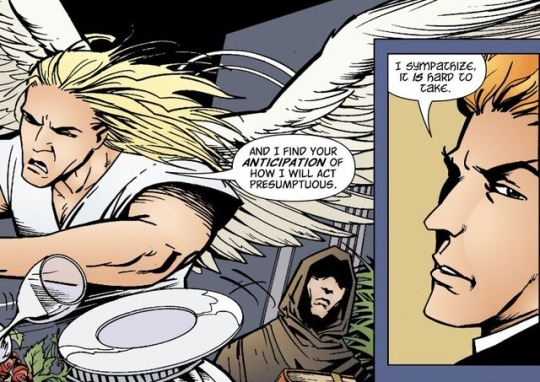 The rest of the story reverts to the present time, with the protagonists racing the clock to stop the universe’s imminent doom. There’s a small but important appearance of Destiny of the Endless, hosting a dinner with Michael, Lucifer, and Elaine Belloc. The dinner table convo is fascinating as ever, especially that we all know Lucifer hates the said Endless as a concept (escape from predestination = Lucifer’s driving fuel, the point of the whole series). Epiphanies abound, one of the biggest being Jill Presto’s. The volume ends with a character death and kin-shed blood, resulting in the possible conflagration of not only one but two Creations.