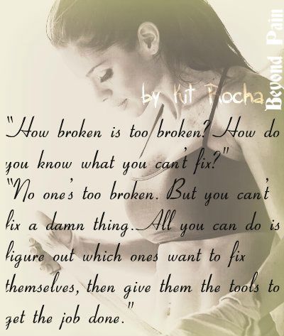 "No one's too broken. But you can't fix a damn thing. All you can do is figure out which ones want to fix themselves, then give them the tools to get the job done."