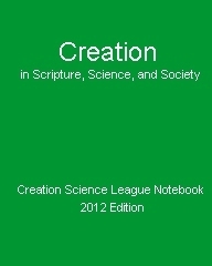 Creation in Scripture, Science, and Society: The Creation Science League Notebook 2012 Edition serves as an outline regarding the evidence for Creationism. It is designed to be a central location where people can record all of their Creation science notes from either Creation Science League members or other creationist audio and video presentations.