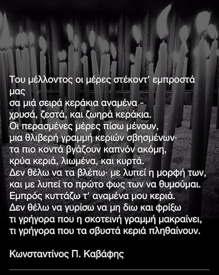 the thing about kavavis is that I find it more enjoyable reading about the backstory and the things that inspired him to write his poems rather than actually understanding them. I appreciate how he used historical figures in order to portray his personal conflicts at dat time. He's sort of like the van gogh of greece in the sense that his work got fully appreciated post mortem (that's probably because he purposefully published his poems one at a time years after his death). People keep telling me that I'm gonna appreciate his work as I get older... oh well!