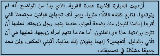 يا ثريا، يظهر انك لا تعرفين قوانين مجتمعنا، كما ملاها علينا امامنا المبجّل منذ سنوات. فعندما يتهم رجل امرأة (يتهمها بالزنا) عليها هي ان تثبت براءتها. انه القانون. وفي المقابل، اذا اتهمت امرأة زوجها، فعليها هي ان تأتي بالأدلة
