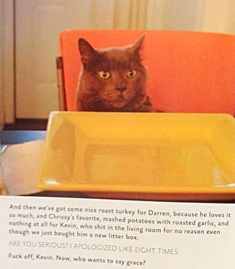 This is hilarious. My favorite by far is on page 16 -- the cat staring at the "carnage" on a plate. I didn't even finish the first sentence before I was crying from laughing so hard.
