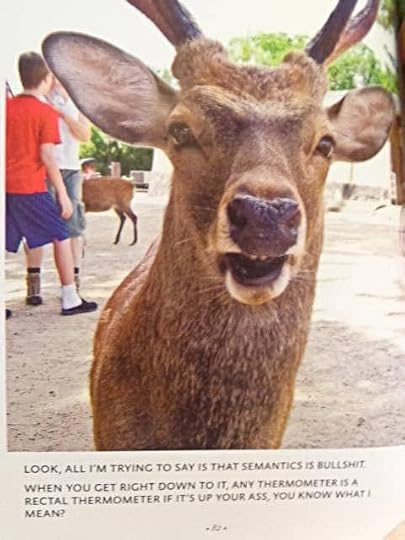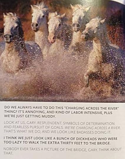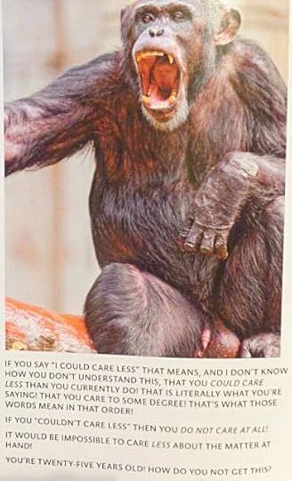 Some of the pictures were great, but a lot of the captions struck on the same repetitive jokes. A lot of them seemed to have really gratuitous swearing (which I don't always mind, but it felt forced). I also thought he relied way to much on sex and bathroom humor instead of wit.
