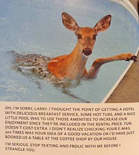 Animals that are witty and smarter than your average friends talk in all caps and discuss nail polish, relationships, beauty standards, work retreat interactions, and how to impress the ladies in their own world. Sharp and current, the book is beautiful and the captions inspired. This is today's dry humor at it's best. Buy the book. Visit the tumbler. Laugh. Tell your friends. Repeat.