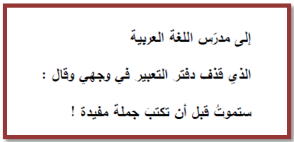 أوّل ما شدني للكتاب هو التّحدي الصريح في أولى الصفحات لمدرّس اللغة العربية، وكان إهداءه له : "" إلى مدرس اللغة العربية الذي قذف دفتر التعبير في وجهي وقال: ستموت قبل أن تكتب جملة مفيدة ! ""