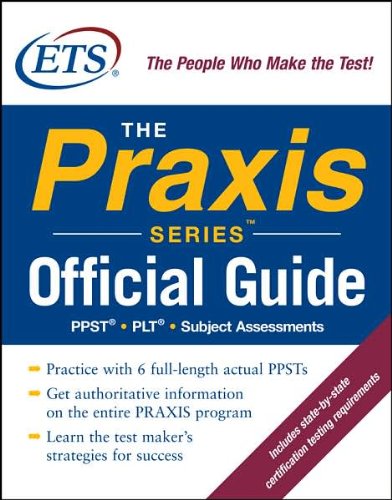 The only official guide to The Praxis Series of teacher-licensing exams-straight from the test-makers. If you're looking for the best, most trustworthy guide to the exams in The Praxis Series, you've found it. This official Praxis guide comes straight from ETS--the people who actually make the tests. It will show you exactly what to expect -- whether you're taking the PPST to begin your teaching career, the PLT to demonstrate your professional expertise, or a Praxis II Subject Test to prove your knowledge of a specific K-12 teaching topic. Only ETS can give you real Praxis questions for practice, show you exactly what you'll see on screen on the computerized exams, and tell you the test-maker's own strategies for success. That's why this guide is your indispensable source for everything you need to know about. The Praxis Series. No other Praxis guide gives 6 full-length real PPST exams. Hundreds of authentic PLT and Praxis II questions-so you can study with the real thing. Sample PPST essays with actual raters' comments. The latest state-by-state teacher certification testing requirements. Comprehensive outline of PLT study topics. Complete coverage of Praxis II Elementary Education tests.