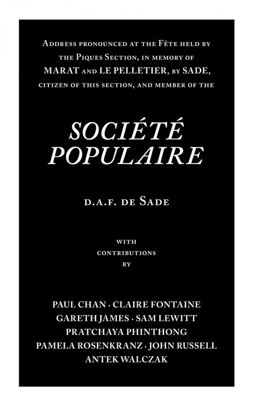 Presented in honor of Marat and Le Pelletier, "Citizen Sade" wrote this memorial address at the height of violence during the French Revolution, just after the start of the Reign of Terror. The text, effusive and cloyingly patriotic, brings to question Sade's own political position – a provocative impulse all the more remarkable given the addresses audience: the gathered Section des Piques, amongst the most hardline Jacobin districts of Paris. Though frequently cited and made infamous as the inspiration for Peter Weiss' influential work of avant-garde theater Marat/Sade, the text itself has remained obscure outside of France.