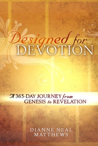 Designed for Devotion, Dianne Neal Matthews I loved this book. This is a not only wonderful devotional but a great addition to a Bible study. Dianne Neal Matthews takes us on a journey from Genesis to Revelations. She shows a little history of the scripture. The best part is the way we are showed ways to apply it to your life. It helps to bring you to a place of greater understanding. If you are searching for a closer walk with the Lord this is a great tool.