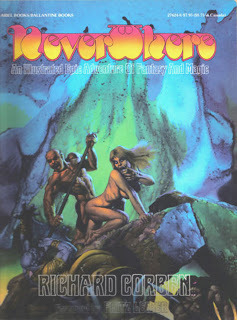 A young nerd who comes temporary to the land Neverwhere, a universe inspired by Robert E. Howard's Hyborian Age and Edgar Rice Burroughs's Barsoom (Burrough's are mentioned inside this album as H P Lovecraft's Cthulu also are and comes in the end), get transformed to a muscular hero who kills, have sex and save girls from monsters and other troubles. The book haven't got a good drawing style which is its big disadvantage and take away the nudity which would give the story a better face because that's a good one... for me it felt like it was too much focus on sex and nudity to drive the story forward and get the focus right and the great oldschool Sword & Sorcery drawing on the frontpage which made me pick this up, together with the Fritz Leibers foreword, makes a lot of promises for both the story and drawings in witch the drawings sadly didn't deliver that the front page had given me for expectations. The story are a good one who would be given rightness if it had more proper drawings attatched...
