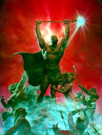 The plot here follows a scrawny nerd who accidentally gets sucked into a surrealistic alternate dimension where he's now a muscular barbarian warrior. He promptly gets pulled into all sorts of convoluted intrigue with different religious cults (one of which worship a deity named "Uhluhtc" - the name of eccentric 1930's era horror author H. P. Lovecraft's extraterrestrial god Cthulhu spelled backwards) and corrupt decadent aristocrats scheming for control over an orb with strange and terrible powers called the Loc-Nar. (which became the centre for the framing device of "Heavy Metal" '81 hence being included in every single segment there)