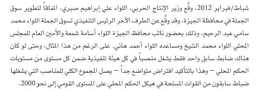 كتاب رائع وصغير من نهايات العام 2012 الكتاب يعتبر نظرة ثاقبه ومدروسه على ما ماهية القوات المسلحه ودورها فى الدوله المصريه واهم النقاط فيه تتلخص فى التالى : 1- تمثل القوات المسلحه القوى الاكبر والاعظم فى الدوله المصريه وكذلك يعتبر الضباط انفسهم 2-يتوغل نفوذ الضباط داخل كل مؤسسات الدوله سواء اكانت عامه (من شركات وادارات )وخاصه 3- مالم يتم تفكيك حمهورية الضباط سوف تستخدم نفوذها السياسى والادارى للسيطرة على الجيو الاقتصاديه والسياسيه الرئيسيه لاسقاط اى حكومه قادمه لا تتماشى مع المزاجيه العامه للمجلس الاعلى لهذه الجمهوريه 4- بدأت سوءة هذه الدوله تظهر فى اواخر حكم مبارك اذ كانت موجوده بنفوذها اثناء فترات الحكم السابقه ولكن ليس بهذا النفوذ اى النفوذ الذى يمكنها من صناعة جمهوريه خاصه بها وحدها ووحدها فقط 5-بحسب تقارير الخارجيه الامريكيه ووثائق ويكيليكس فان القوات المسلحه اصبح منزوع العقيده القتاليه اذ انه اصبح مكون من مجموعه من رجال الاعمال وكل يبحث عما يخدمه لكى ينمى ثروته 6- تماشى اقوات المسلحه مع موجة يناير كان متميزا جدا اذ انها احتفظت بهيكلها من دون تزعزع بالتضحيه بالشرطه فى يناير 2011 7- تعامل القوات المسلحه اصبح تعاملا دونيا الى الشعب وهذا يتمثل فى الصورة الشهيرة للجندى والطفل اذ انه يتعامل مع الشعب على انه "اعيال" 8- اى مساس بما يتعارض مع نفوذ حمهورية الضباط سوف لن يستمر ابدا اذ انهم يملكون مقومات دفعه اما بالقضاء او بالعزل والاقاله او بالسلاح 9-عدم خضوع القوات المسلحه الى اى هيئه رقابيه مكنهم من اجراء صفقات ومشاريع واقامة شركات تخدمهم ولضمان هذه الخدمات فان الضباط المتقاعدين الاكثر ولاءا للنظام يعينون بها 10- فى وجهة نظر المؤلف ان تكاتف مرسى والاحزاب المدنيه ضد هذه الجمهوريه يمكن ان يفككها وتبنى دوله مدنيه حقيقيه. اتمنى ان تعاد صياغة هذا لكتاب بما يواكب هذه المرحله وكيفية الخروج منها اذ ان نفوذ جمهورية الضباط تمكن من قلب الطاوله على رأس ثوار يناير وحل الثورة هو ان تقوم بثورة تلغى ميزات الثورة التى هددت نفوذ الجمهوريه
