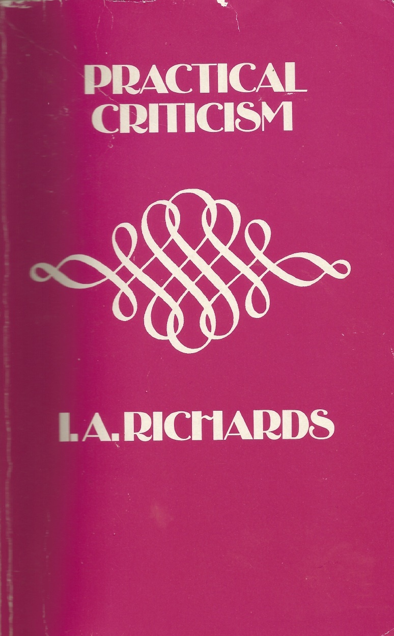 I.A. Richards was teaching literature at Cambridge in the '20s when he asked his students to all make "protocols"--their understandings--of fifteen anonymous poems. He was a powerhouse behind the movement for close reading--dealing with the thing itself, as opposed to biographical and thematic readings of literary works, relying largely on secondary materials.