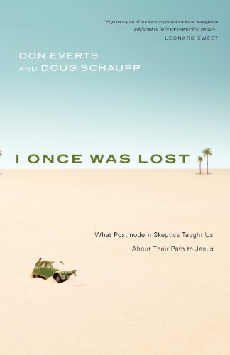 I Once Was Lost: What Postmodern Skeptics Taught Us About Their Path to Jesus was forged by two Intervarsity Staffers after interviewing over 2000 new Christians about their journey to belief in Christ. Don Everts of the University of Colorado and Doug Schaupp, the regional director for campus ministries in Southern California, leave room for mystery, understand that the path is wandering and sometimes makes switchbacks and encourages us to open our hearts to love first.