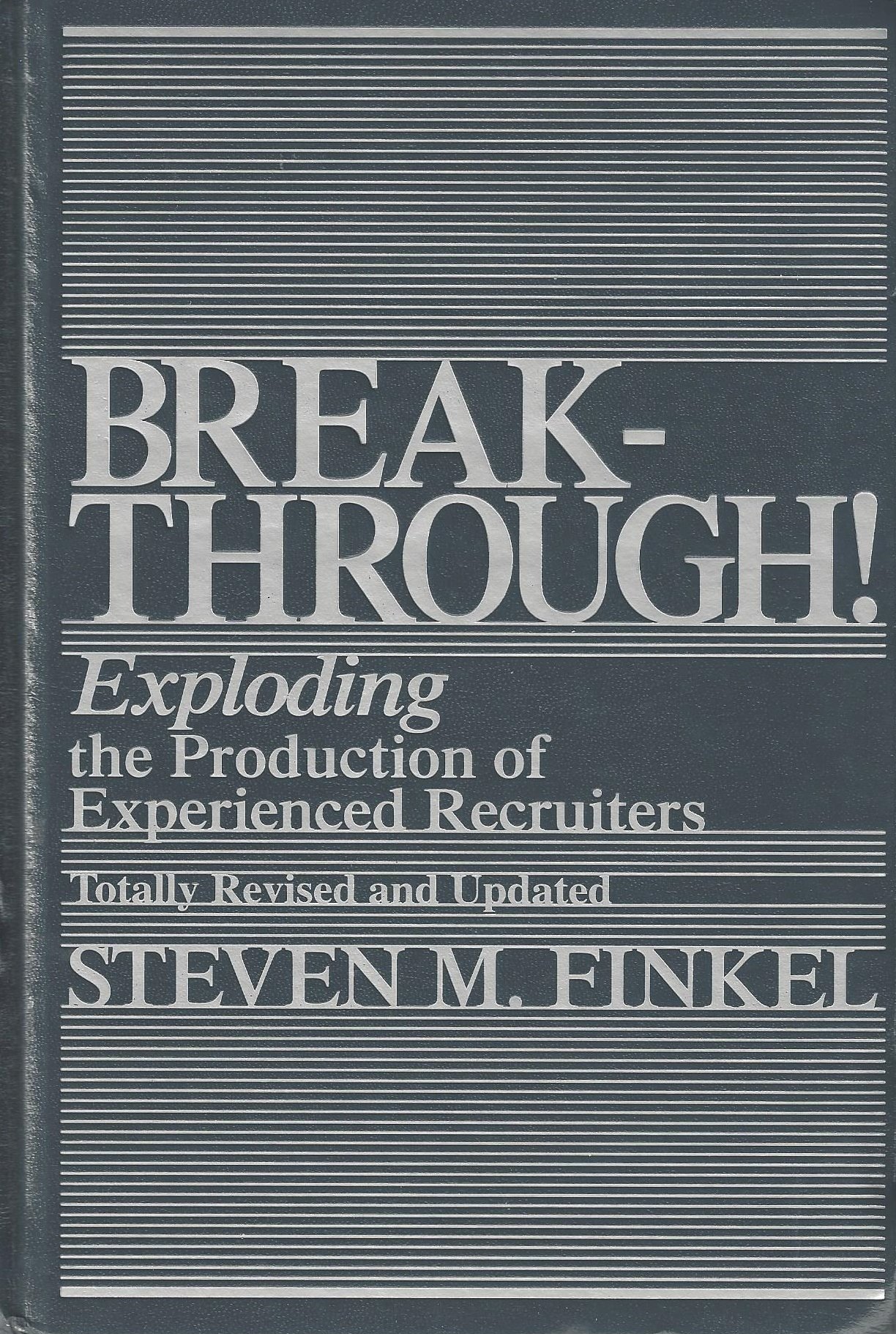 Signed by Author Steven M. Finkel. Organizing and Developing Your Client Base, How to Achieve Strong Billings in any Market, Solution to a Motivating the client to sell, Capitalizing on the Difficult to Fill Position, Presenting and Merchandising the Candidate to Client, Verifying the Interview/Coaching the client, Testing the search, Candidate Concerns Why and How, Marketing the Candidate, An Overlooked Basic and More over-looked Basics, The Send Me a Resume Delay, Planning the Closing Call, Slump, Cause and Cure, Managing the Process, Dealing with Comfort When the Striving Stops, The stages of Skill Improvement, The Plateaued Consultant, From Good to Great, Outside Training, Seven Ways to increase production, Thirteen Giants and a Pygmy, A Survey of Books on Selling, Developing Your Voice, Care and Feeding of the Voice, Born to WIn.