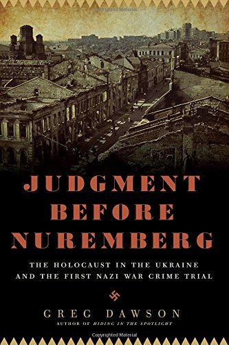 Given the title, one might expect this book to be about the Holocaust in the Ukraine and the war crimes trials that took place there a couple of years before Nuremberg. Instead, the author spends most of this book talking about an earlier book he wrote, what it's all about, how he came to write it, and the research he did for it. While his wish to highlight his familial ties to the subject he intended to discuss in this work is understandable, far too much space was allocated to that. What background he gives on the Holocaust in the Ukraine is interesting (though not every reader of his is as ignorant about these basic facts as he seems to think), but repetitive - either the editor was asleep, or Dawson thinks his readers incapable of retaining a piece of information for more than a handful of pages. It's not until chapter 24 out of 29 that he finally gets around to writing about the actual war crimes trial he set out to enlighten the reader about, and he doesn't really have all that much to say about it.