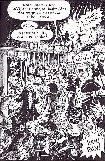 Je trouve que le dessin manque parfois de personnalité, mais il est d'une précision historique redoutable, évoquant les gravures de l'époque. Et certaines pages sont tellement superbes que j'aimerais les découper pour les accrocher au mur (la montgolfière, le Palais royal, les Etats généraux, ...).