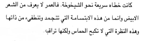 العمر لا يعرف من الشعر الأبيض وإنما من هذه الإبتسامة التي تتجمد وتنطفئ من ذاتها وهذه النظرة التي لا تكبح الحماس ولكنها تراقبه . |- مالك حداد .