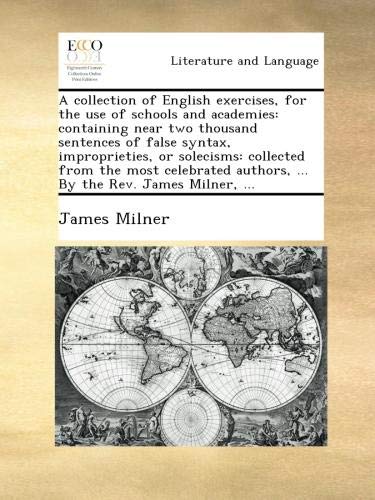 A collection of English exercises, for the use of schools and academies: containing near two thousand sentences of false syntax, improprieties, or ... authors, ... By the Rev. James Milner, ...