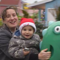 The husband has served her bagels with "creamed" cheese a little earlier. We later see him running around their home in "over-run house shoes."