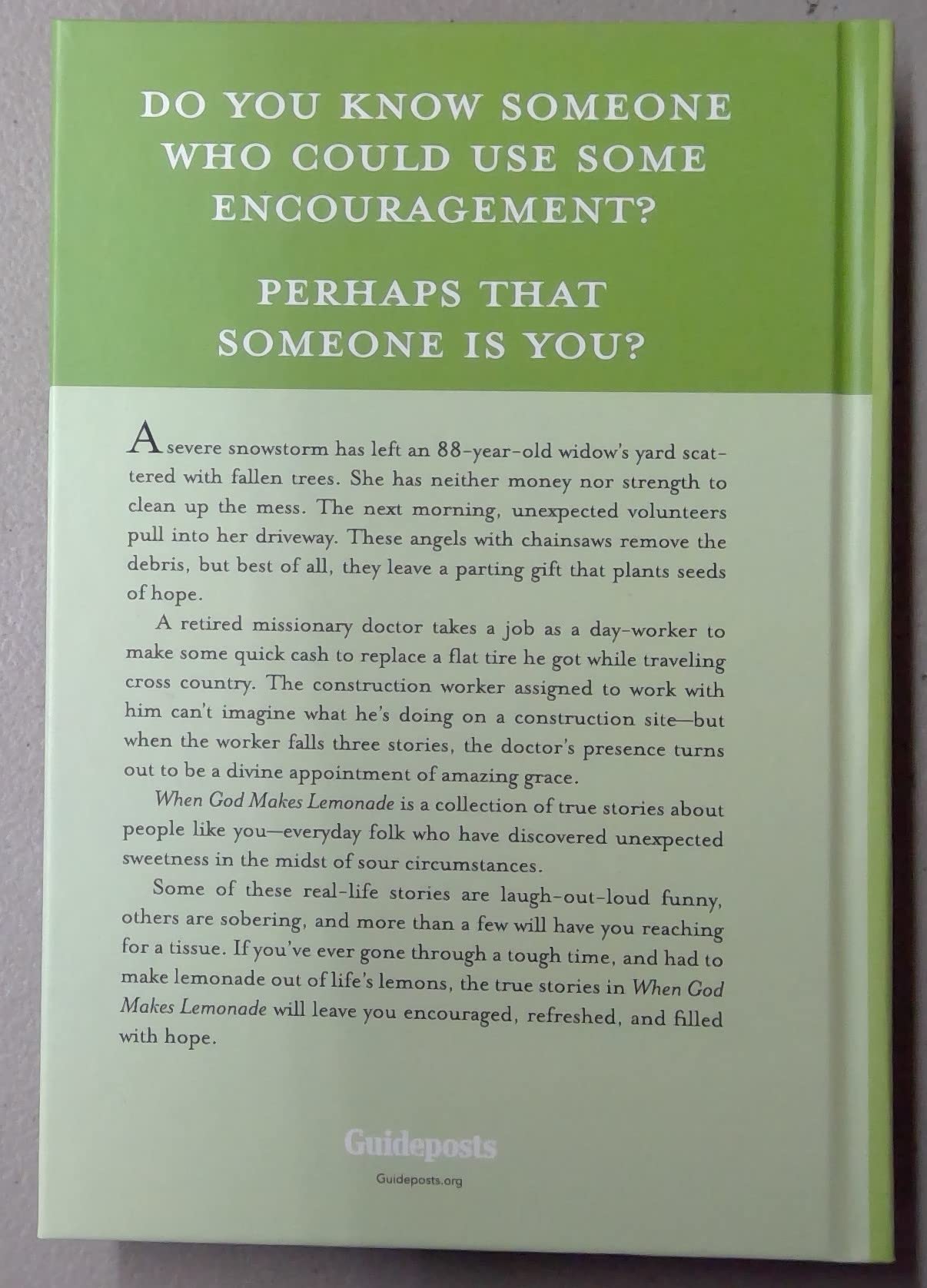 I really enjoyed this book. It has a compilation of real life stories about people who find themselves in less-than-ideal circumstances who trust in God and have their "lemon" situations turned into "lemonade".