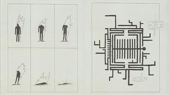 The End is more contemplative, more about Nilsen, and his coping and failures to cope and his trying to regain his sense of humor. They are a very nice and affecting pair, these two books, and well worth checking out. There's a vulnerability and spareness to The End that is typical of his work, but in the spareness there is much depth, I find. It's almost like a principle of comics; the more detail you provide, the less connected you feel with the story (McCloud talks about that in Understanding Comics). Here, this story, so much his, also feels like it is yours, or that you share a kind of intimacy with him. I'm thankful I read the book and highly recommend them, but as a pair.