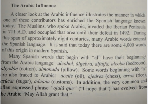 An a curious explanation of the Arabic influence on the Spanish language, which brought in words like "Almoada", "Alhaja", "Ojalá" and the like: