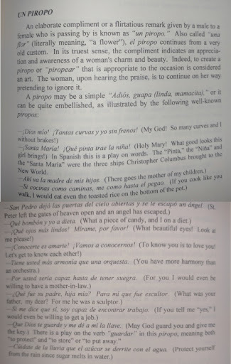 An example of the explanations he provides. In this case, a "Piropo" which is the elegant compliment to a nice girl: