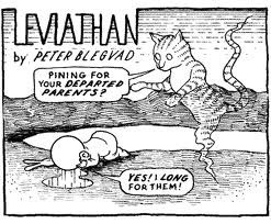 From 1992 to 1999, The Independent ran Blegvad's strangely surreal, comic strip, Leviathan, which received much critical praise for blending some of the most interesting elements of Krazy Kat with a coming-of-age-esque story akin to Calvin and Hobbes. Some of the strips have been collected in the 2001 volume The Book of Leviathan. Other comics and illustrations by Blegvad have appeared in The Ganzfeld and Ben Katchor's Picture Story 2.