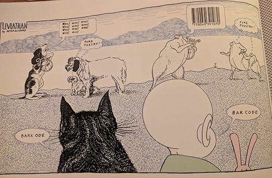I had never heard of either Blegvad or Leviathon when I happened upon this book, but as I flipped through it, I was taken fairly quickly by its bizarre creepiness. The protagonist, Levi (short for Leviathon--who would name their child that?), outdoes earlier bald child/baby comics characters such as Mickey Dugan or Henry by lacking any facial features at all. His companions are a talking cat, rendered, usually, in a more realistic style than Levi, and his stuffed bunny (which does not talk, or indeed do anything). The strip occasionally offers short continuities but more frequently is a gag strip, though the gags at times make even Gary Larson look tame. The strip mixes styles liberally, is at times whimsical, creepy, surrealistic, existential, nihilistic, and meta. In short, apart from the continuing characters (and Blegvad's fondness for groaner puns--a bonus for me when I actually read the book, as I hadn't spotted any of those in the bookstore), the strip can go pretty much anywhere. Levi even dies at least once, with no ongoing consequences. Unfortunately, this is the only collection of the strip, and I am pretty sure it is incomplete. I'd love to see more. While this work rarely inspired belly laughs, or even chuckles, it it a brilliant example of comics art.