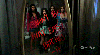 It seems like I'm watching an episode of Pretty Little Liars (which is one of my favorite shows) maybe because of the threats (notes. Ps. Love it because it rhymes. Brilliant. LOL) and maybe because I find it kind of creepy.